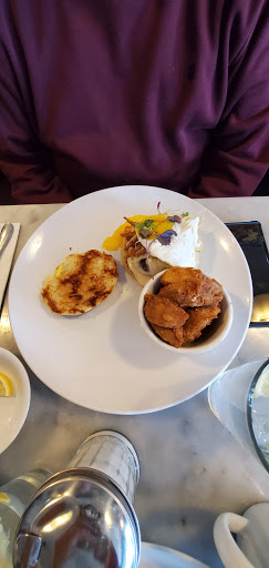 Creative, high quality foods served by an outstanding wait staff. I make the hour drive to enjoy the Blue Door as often as possible. The location is not unique, the building is nondescript. The magic happens INSIDE. Only the highest quality, often locally sourced, ingredients are prepared with care and integrity by a passionate staff. The staff are very knowledgeable about the menu and are a good resource if you are not sure of what you want. I have not been there for dinner. The menus are very exciting. I highly recommend the Blue Door. Oh, the onsite bakery makes the breads, rolls, croissants and pastries that are served with meals and to go. Yum, Yum!! NOTE: If you are looking for a kids menu or belly stuffer food, this NOT the place for you. The food is as good, if not better, than Ive had in Chicago, Seattle, Miami, Denver or Brooklyn.