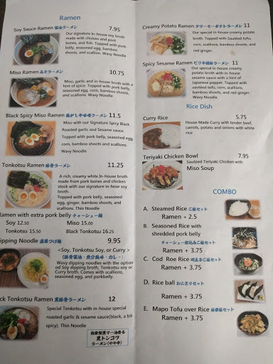 1. If you dont like pork belly, your menu choices are minimal. I dont care for pork belly, so a settled for a bowl of potato ramen "stuff". It was just meh. My wife got "spicy curry something-or-other". It was not the least bit spicy, but was so salty she couldnt eat it. 2. $24 for two bowls of ramen noodles with a handful of scallions and cabbage isnt what I would call a value. After my wife and I paid $24 + a tip, we immediately went home and made lunch because we were still hungry. 3. Now I will have to deal with my wife giving me "the look" every time I suggest trying something new for lunch.