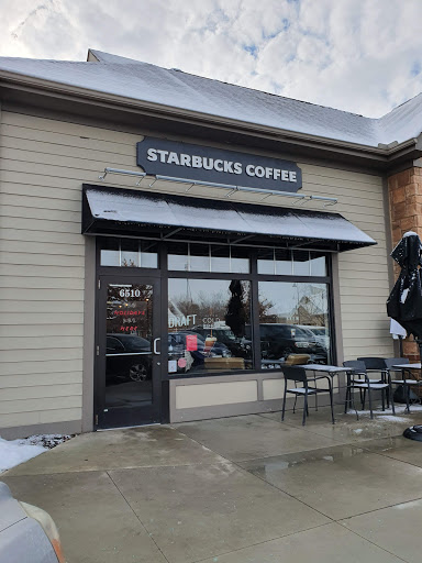 Its a well maintained Starbucks location with a dozen or so tables. Clean and bright inside. Staff is always super friendly and helpful. The drive through is easy to get to and is usually fast.