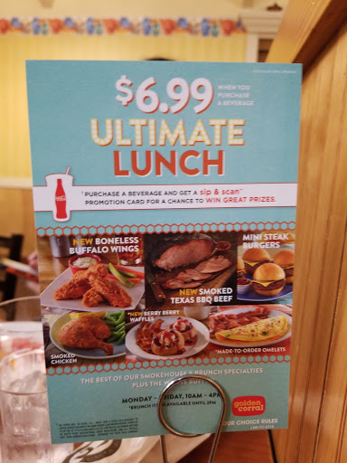 We love going to this Golden Corral because it is nice and clean. The manager is super nice, she always comes to our table to say hi. The hot food is always nice and hot and delicious. We drive way out of our way to come to this location. We do have a Golden Corral very close to home but its dirty and the food is awful. The employees are not very nice and dont keep the tables clean.
