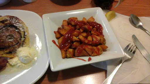 The employees are always very friendly and the restaurant is clean but outdated. Ive eaten in and had take out from here without any complaint. Its a laid-back environment so dont try to eat in if youre rushing. Breakfast is the only type of food Ive tried, and mostly it is good but can be a little bland. The baked goods are fantastic though! I love their blueberry muffins and strawberry and sweet cream cheese crunchers.