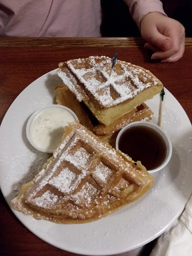 My wife and I went to this restaurant while travelling. The restaurant was clean, aside from some sticky spots on our table. The customer service was very friendly, helpful and quick. The menu was really impressive, they have a decent size selection of options and some of the options were too interesting not to want to try. My decision was difficult, but I went with the Chicken and Waffle, which was delicious. The chicken marinated and breaded on order, never frozen and was really crispy yet juicy. My wife got the Slaw Burger which she said was also fantastic. We look forward to making another trip to hit some more stuff on the menu. Although we didnt get beer on our trip, o did notice they had a pretty good bottle beer selection for craft beers. We would definitely recommend checking this place out if you are travelling through.
