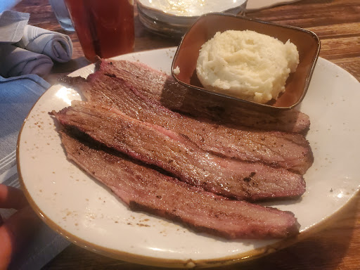 We had their loaded potato chips to start. They were very good, loaded with toppings. We opted to split their sampler platter so we could try a few of the different meats. We had the brisket, pulled pork, and smoked wings. All were very good and full of flavor. The meats are a bit on the expensive side. You wont really find any under $15. The other reason for the ding down to 4 stars is their confusing gluten free labeling. The pulled chicken is labeled gluten free on the menu but the waitress informed us that it really is not as it is marinated in their house BBQ sauce. Which brings me to my next point... The only gluten free BBQ sauce is their Carolina Gold sauce, which is the worst one they have, its very unbalanced and vinegar/mustard heavy with almost no sweetness. The others are all delicious, full of flavor, and well balanced. If the reason their sauces are not gluten-free is because they use soy sauce in them, I would highly suggest switching to the Tamari-style gluten free soy. It only costs a few cents more and allows you to make gluten free BBQ sauce. Unfortunately, with my girlfriend having celiac disease we will be unable to return as the Carolina Gold sucks for her only option.