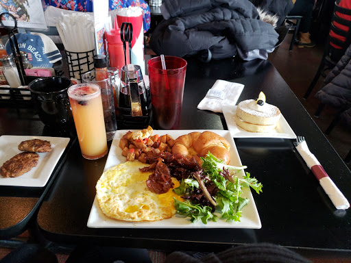 The menu at Super Chefs is different and interesting. Worth checking out. Our wait was over 1 hour long on Sunday at noon, you give your phone number and they text you when your table is ready. Instead of leaving for a bit, we waited in the entrance area for our table. We were a group of 2. While we were waiting, another group of 2 walked in, heard there was an 1+ hour wait, so they pretended to walk up to the bar and place a take-out order, but as soon as 2 seats opened up they sat down...poor management of the hostess station. My son ordered the Broad St burger, said he liked it. I ordered the Hulk breakfast (a green waffle sandwich with eggs and sausage in between the waffle). The top waffle had some syrup in it, which was good, but no syrup for the bottom piece. They ran out of sausage. I ordered sweet tea to drink, and when I asked for a refill, those are not free. Not sure if soda or coffee has free refills or not. Overall, the pricing, long wait, and no free refills makes me not wanna go back.