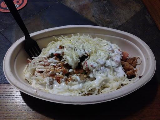 Built on a dump smells as you walk in ordered a bowl that wasnt even half filled and I get everything. Kid behind counter asked me the same question twice yet still put chicken instead of stake. The tortilla I got on the side because I roll my own has burnt or mold spots on it. Very disappointed.