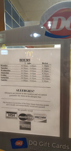 Typical Dairy Queen food.staff is nice. Great ice cream. Clean and you can set outside which is nice.