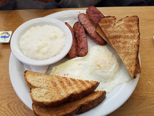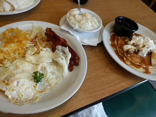 I went a little early so it wasnt very busy, maybe 10 customers total. The food was great, I had the hearty breakfast; eggs over easy, rye toast, hashbrowns and sausage patties. The sausage patties had a different texture but tasted good. I also had the cinnamon roll pancakes, amazing! I just barely ate half of all my food. What really earned the 5th star was Kelly my waiter. She wasnt over bearing while being tentative to me. Lite conversation, with no awkwardness. Shes pro military which is a plus these days. Kelly made the experience whole.