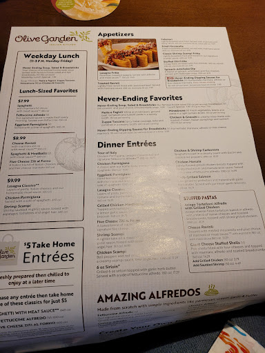 Typical Olive Garden. Not innovative but reliable menu, attentive service.
