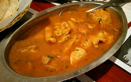 After hearing some friends how good the food is, we decided to give this place a try. The restaurant is dimly lit and cozy. A bar spans the back and theres plenty of table seating. The restrooms require quite a hike through some of the most dated hotel corridors Ive seen in a while. It so happened the evening we visited, two tables of 20 (!!) showed up and the staff was scrambling. A couple of times, the food runner literally ran as he brought orders. We hit on the weekend of nearby Denison Universitys graduation, and it looked a lot of parents and families had the same idea for dinner. We waited a little longer than ideal for our meals, but the staff was apologetic and came around with free mango lassi for us and other guests as a courtesy. After we got our food, our server and another employee checked back several times and made sure we had everything we needed. Hey man we assumed was the owner came around and apologized for the long wait. We felt welcomed and appreciated the friendly service. My husband and I had the chicken curry and the chicken vandeloo. We ordered both spicy on a scale of mild, medium or spicy. The curry was flavorful with tender chunks of chicken. However, it was not spicy. The chicken vandeloo, however, made up for it. It had quite a kick! The dishes are served up family style so it is easy to sample different things. The naan was hot and fresh, nicely spiced on the butter garlic order. Well definitely be back.