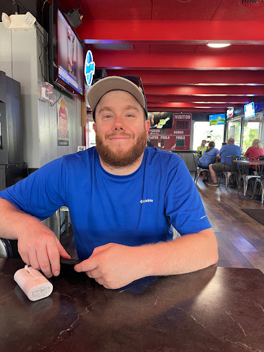 GREAT WINGS Usually have a seat out on the patio to see the bikes and cars go by! Beer from Buckeye brewing is amazing