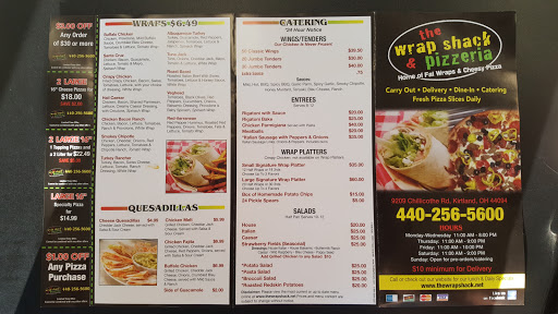 Great food! Great service! A group of 45 of us visiting Kirtland ordered lunch and dinner through the Wrap Shack and both were excellent! The wraps for lunch were tasty and affordable. For dinner we ordered Chicken Parmesan and Meatballs. Both were a great hit and the portions were generous. The delivery man was on time and the staff handling our catering order were very thorough.