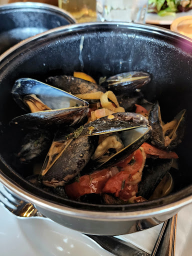 Disappointing flavorless bouillabaisse. The broth was closer to a cream sauce. Not much seafood for the price and it was all over cooked. The best part of our meal was the waiter, who was smiling and exuberant.