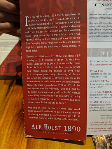 My wife and I had heard good things about Ale House 1890, but both bad service and food which seemed of low quality for the atmosphere (which was very cool) and the prices. To begin with, I ordered a draft beer from a brewery in Columbus I have been to many times and it didnt taste right to me. After taking a sip I told the server this and asked if I could have another beer instead - he said he couldnt do that. Most nice places I have been to would have happily allowed this - I blame the management. We asked the server several questions about drinks and food on the menu that he couldnt answer - this seems like a training issue. When I was a server years ago, I was required to taste every dish on the menu and to memorize the ingredients in each one. I ordered the Cuban Chop - I didnt think it very flavorful and it seemed dry to me. My wife had the Salmon Pear salad - the salmon was way overdone. Although they redid the dish, they took her entire plate away while waiting for the Salmon to be recooked so she couldnt even eat the salad part, which was fine. All in all, too many things were wrong with the experience for me to believe it was coincidental!