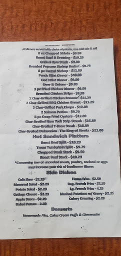 Had the all-you-can-eat fish one Friday, long ago. One piece was half frozen. Nice, friendly place. Id make sure its cooked right, though. Pie was good.