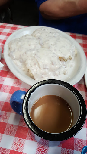 Shockingly terrible. We went because of the reviews here and there is no way theyre true. Alleged fresh biscuit extremely stale. Bacon indescribably flat and strange tasting. Omelet and potatoes unappealing. Gross environment cluttered with junk and random people in and out of the kitchen getting coffee and hanging out. One star for friendliness. Stay away.