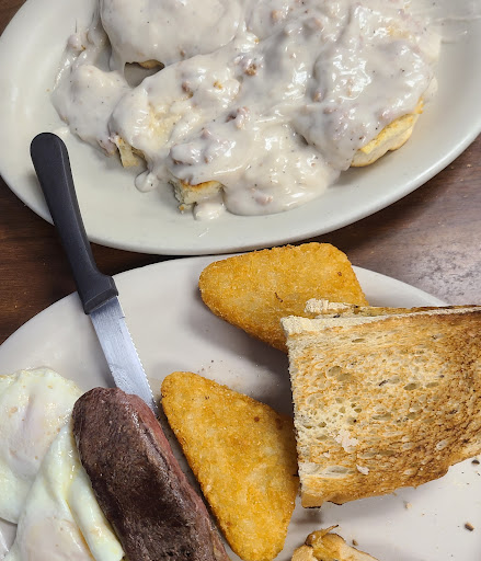 Cheap breakfast with quality food in a neat 50s themed atmosphere. The owner was our waitress and she was fantastically polite and personable. Were not from this area but it seemed like a place the locals would flock to.