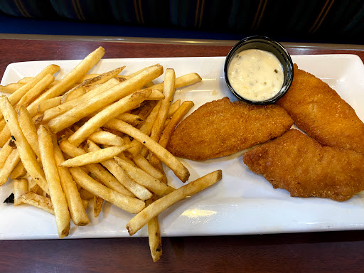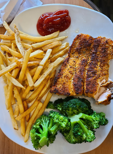 Great fish, salads and fries. Lots of choices. Serves breakfast all day. Love their coffee. Calories printed on the menu.