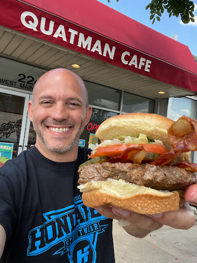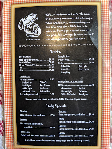 This place used to be amazing; the cheeseburgers were the best around. Over the past year the service and quality have gone way down! We dont eat out a lot and Quatmans Cafe was a family favorite so when we voted for where to go, it wasnt uncommon to go to Quatmans Cafe. That is even despite the very small crowded space with it being a local favorite of many! However, we went about a year ago and took my sister from CO there for her birthday and I actually felt bad that it wasnt as good as usual. Burgers were over cooked. Then we went again a few months later and experienced the same disappointment. The last time we ate there we decided it would in fact be the last, experiencing yet again the same disappointing experience with the quality as well as service. A few months passed, bringing us to today when we gave it one final chance to win us back as customers and sadly it was the worst quality yet my burger even burnt!!!!! So a bit disappointed losing a good burger joint as a family favorite, but we will have to refuse to pay the good burger prices for a not good burger or to eat a not good burger for any price! I have noticed different staff, not sure if that is the reason, but although it was still way over crowded due to the yuppie atmosphere of Mason, eventually the poor food quality and service will leave people searching for a new yuppie hangout! Not sure if this is the same downfall at other locations also, but the Mason location is going way downhill!