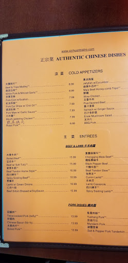 This place looks like a common strip mall Chinese restaurant but we all know you shouldnt judge a book by its cover. What this restaurant has that very few others do are the special pages at the back of their menu that feature authentic Chinese dishes - in other words you can get the food that Chinese people cook at home here. You are not even limited to that menu because they have cards on the walls listing even more chefs specials. You can be as daring as you like and try some of their dishes featuring things like tripe or organ meats. For me, as a vegetarian, there are also many delicious options throughout their menu. My favorite meal at Sichuan Bistro is the cold appetizer Spinach with Ginger Sauce along with their spicy Vegetarian Ma Po Tofu, accompanied with a great Tsingtao beer. In addition to the great food, this family owned restaurant is very welcoming and everyone who works there is very friendly. My daughter and I took my parents there for lunch recently and they loved it too. Prices are also very reasonable for the generous portions.