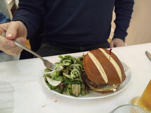 Today I ate at the Wildflower Cafe, in downtown Mason, Ohio. Its a quaint small house converted to a cafe for lunch and dinner. I dined with friends who were drinking wine and enjoying a cheese and cracker plate as I arrived. Seated right in front of the door, the place was in full capacity. I ordered the WORLDS BEST BURGER, a WEBB VALLEY FARM, grass fed beef burger, served on Pretzel bread, with double smoked bacon, shaved onion, organic greens, cherry tomato and fresh herb aioli. I had blue cheese added and a side of potato salad. It was juicy and very well made cooked to order. The pretzel bread was very good but hard to eat as a sandwich. I had the side of potato salad which I must say had the best taste ever, very sweet with a taste of pickle and garlic. My friends had specialties as well. One friend had soup and salad, very fresh veggies and homemade and fresh soup, she loved it. The other friend had GOURMET GRILLED CHEESE, a buttery toasted rosemary bread, melted provolone & cheddar, with organic bleu, organic feta, shaved onion, fresh tomato, organic greens and bacon. All food is organic and grown locally. Wines are local as well and served at the table or in their upstairs wine bar. I was very pleased with the service and ambiance, food was excellent, a little pricey $$$. Rated ****