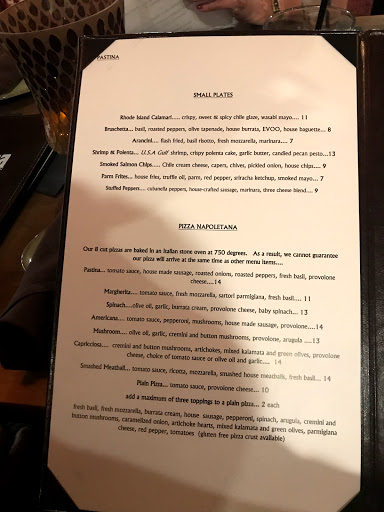 Ok so Ive been here once before and it was OK. I went last night for my wifes Bday and we had made reservations to eat. We got there and were immediately greeted and seated us next to the table of 20. It took 20 min for the waitress to come take our drink order. I asked if the had a recorking service as I was going to buy a bottle of wine. She looked at me like I was speaking another language and responded with no knowledge of what she was talking about, but told me yes. Fast forward to the end when I expected my wine to be recorked and sealed to go home, heres what she did. She shoved the cork in the top and gave me two "thank you" bags to put it in. So after my 100 dollar diner which was subpar, I was sent home with an open container. How unprofessional. Pastina sells a very wide selection of wine so why did this happen? We will not be returning to this place bc of this incident and our entrees were poorly done. The inside of this establishment is nice and well done. Doesnt match the service or food quality. I heard they had good pizza, but that isnt what we had. Sad this place had potential to be good.