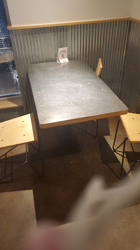 Arrived with only one clean? table so we jumped the line to ask they be cleaned. Asked again when we got to order, asked again half way thru, asked twice at the register, had to sit at the high table which was still the only one clean. Restroom ditto. Came to eat the pig, not eat in the pigsty. Hope they keep the back cleaner or Im in trouble.