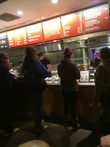 Disappointed. Ordered a Carnitas bowl and totally got ripped off. The lady making the bowls had bright pink short hair & barely gave me any rice or meat then when i asked for her to put more rice on she gave me a disgusted look and when i asked for more carnitas she gave me the muddiest part. Another annoying thing was every 5 seconds you here someone shouting "door" "door". Food wasnt even that warm wont be coming back to this Chipotle.