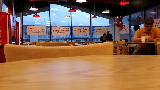 Five Guys Burgers and Fries is a great little spot for Burgers. This fast casual chain is ideal when your craving a burger but McDonalds, Wendys and Burger King (all these within a quarter mile) just wont cut it. Youll pay a little more but youll be rewarded with a must more authentic burger. This is the kind of burger your happy to bite into when your at a neighborhood bbq. A good portion of real meat dressed with fresh toppings and served with fries.