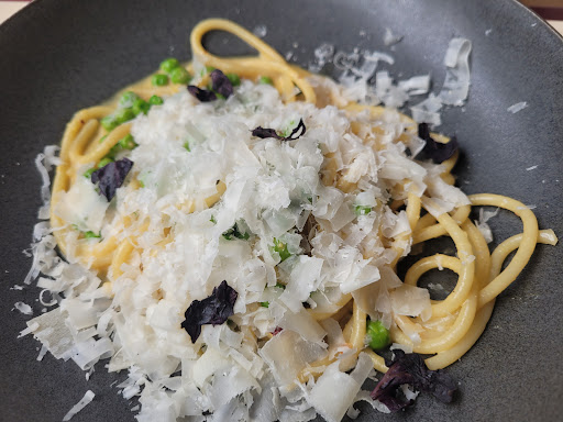 What a perfect lunch. White bolognese with shredded pork vs typical beef was out of his world! They also have a perfect fried chicken sandwich and a stellar, accessible wine list. Beautiful place with wonderful outdoor seating!