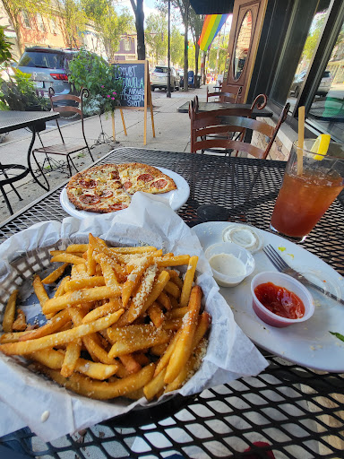 Ive had two of their pizzas and Ive been pleasantly surprised. I typically dont like tomatoes or olives, which were on both pizzas I tried. Well, they were great! The quality of food here is wonderful. Enjoy a glass of wine and then head over to the toy shop across the street for some laughs. Great for dinner or lunch.