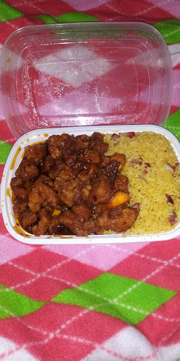 Food was hot but had been sitting under a heat light for a while. Tasted very gummy. I was willing to return the food to be re-made, and I was told they were to busy. NEVER EAT FROM HERE! They even sent a 7yr old boy to my door to deliver my food. Food is DISGUSTING and child slavery still seems to exist!