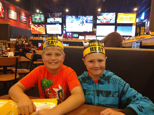 Food is what you would expect from Buffalo Wild Wings. Its average. Dont plan on having any kind of conversation there. Its just too loud. If you want to watch the game & drink a beer, then its perfect.