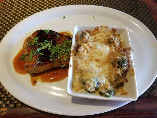 Great food. Had the Blackened Tilapia with grilled zucchini. Service was excellent. Waitress was very pleasant and attentive. Was quiet, even for a booth in the bar area.