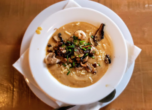 Very cozy atmosphere with a rustic look, and a nice looking bar. Sat at the bar, service was very prompt and friendly. The bruschetta was amazing and a nicer plating/presentation than would be expected at a pizza place. The House Special pizza is loaded with toppings, and a small was definitely enough for two people. There are plenty of pizza places in New Albany, but it is the care with which their food is prepared that sets the Mushroom apart from the rest. I will definitely be back to try their other items.