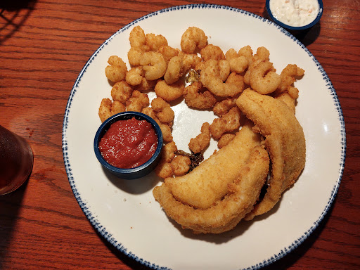 Very disappointed. Not up to the standards of other Red Lobsters. My lobster was over cooked, hard and like rubber. The shrimp was okay and the salad was good. To top the evening off was the arguing between a couple close to us and no one said anything until after 15 minutes. Loud and abusive and profanity for young children to hear. Management should have stepped in way, way sooner. All servers just passed by and never said anything to them. Glad we are from out of the area.