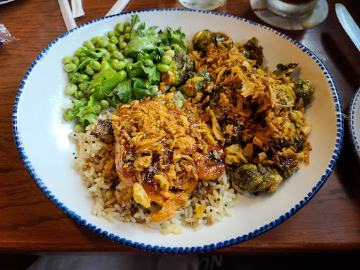 The shrimp was poorly cooked. The rice was gummy. The potato soup was watery not creamy. The salad dressing had too much vinegar. Very disappointed with my meal.