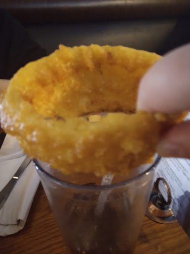 I went there on Feb 23rd around 6pm with my stepson. To start we were seated in the booth closest to the door so every time the door opened, cold air would come in. Our waitress had long delays between refills and was not attentive at all. We ordered the Onion Rings as an appetizer and let me just say they were the worst onion rings I have ever had. They were soggy and rubbery and seemed not fully cooked. I ordered the Fish and Chips which was surprisingly good. But my stepson ordered the NY strip steak at medium rare and he said it was like eating a leather shoe. No manager to be found. Waitress checked on us maybe once! If you are considering going to this place, safe yourself the time and money because we will never eat here again.