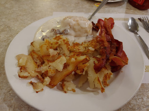 Hit or miss. We have had great experinces and also pretty awful experiences. The gyro breakfast is pretty good, for $8.00 you can easily split between 2 a hearty breakfast. I would not recommend their burgers as they are cheap, nasty frozen patties. I must say the staff is very welcoming and the owner here will give a child a free root beer, if he sees them leaving. The parking lot is a bit on the small side but they do offer pickup if you prefer this option.
