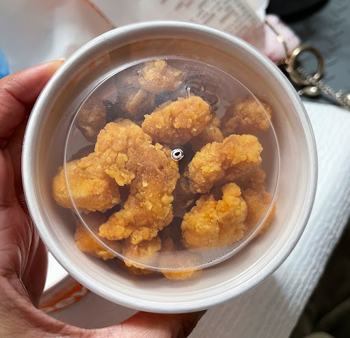 Expensive, greasy, small pieces of chicken could have been from a Cornish hen. I ate it but my stomach isnt happy. Never again. For the price I expected it to be much better. Very disappointed.