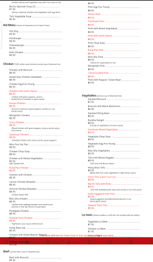 I had been going to this restutant for years. For the first time I can now say they have lost my business for good. My son and I found an addition to our sweet and sour chicken... Small flies cooked into or chicken.