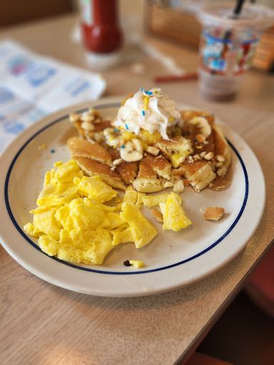 One of the worst IHOPs Ive been to. Service was terrible and slow, even though the restaurant was barely a quarter full. I was overcharged with three extra items on one of our kids meals. Our chicken entree was severely overcooked and dried out. We had to wait way to long for everything while the servers all stood in a group back by the kitchen. I have a pretty low expectation going in because we know its IHOP, but the kids love the funny face pancakes so we go regularly by our home. Stay away from this location.