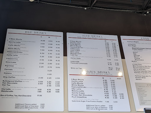 One of the best places to get a coffee or a refreshing drink. My wife loves the coffees and the kid and I love the frozen hot chocolate. The staff has always been very friendly and helpful with suggestions. They also give back to the community by allowing artists to show their work in the shop and by sponsoring community events. Top notch all around. Id much rather give my money to a place like 5 Bean Coffee than a conglomerate retailer shop.