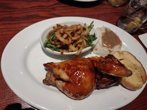 The server was excellent but the food was terrible. I ordered the half bbq chicken and it was dry. I went there to get the brisket philly cheese steak sandwich but they dont serve brisket until 4. I spoke with the manager and explained my situation about wanting the brisket. She took the chicken meal that I did not eat off the meal. She had the brisket sandwich prepared for me and yes I was charged for it. When she stated they could get the brisket sandwich since it was after 4 at that time I though it was going to be a courtesy sandwich but it was not. The sandwich is really not that good also. Smokey Bones get a thumbs down