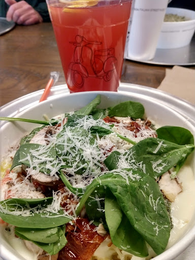 Wonderful food. Great place. Helpful staff. Ive never had a bad experience here though the Italian Orange Soda is consistently weaker at this location than at the other locations of this chain that I have been to. I usually get the pasta bowl with chicken and lots of veggies. I did once try the namesake Piada after my friend in Italy told me her friend owns a place where piadas are sold. I liked it but I like the pasta bowl better! This was the second location I visited out of the four that I have been to now. The one in Columbus was test marketing Gelato when I was there and I hope that goes chain wide soon! I lived on Gelato on both of my trips to Italy.