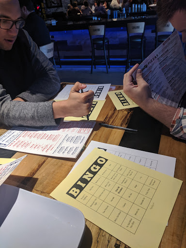 Service was slow, limited seating and we were told it would be a while but no way of knowing how long for a table, games were ok, cheesy bread was good, drinks are not cheap, we spent way too much and did not order that much do to the fact we waited 15-20 min in between drinks. Need more help at the bar to make it easier to order.