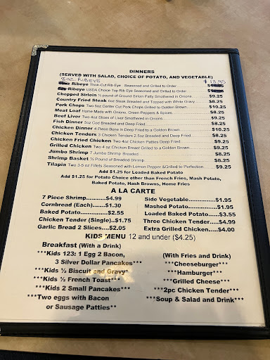 The vegetables taste like they"re heated from a caned source, not fresh. Mashed taters were ok. 2nd time here 1st time I ordered grilled pork chop dinner, chops were not char grilled but more of a fried. I eat here only cause Im driving truck and there is nothing else near by with truck parking. The one red haired waitress looked nice but she wasnt my waitress.