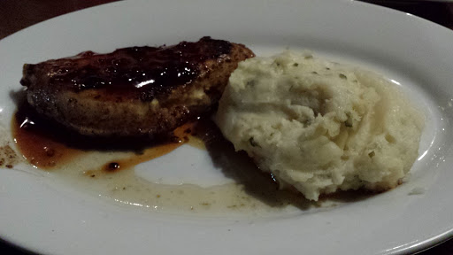 First of all I will say that I enjoy the salad bar, the burgers are okay, and the biscuits are very tasty. I have been here several times, however I dont really enjoy this place. I feel like the entrees are overpriced for what you get and not very enjoyable. The last time I went I had the Hickory Bourbon Chicken and it was overwhelmingly alcoholic tasting, I have had it before and it is not normally like that. I think thats something the kitchen should have checked and it shouldnt have gone out like that. The server told me he could take it back to the kitchen and they could "wash it off and put it back on the grill" I asked for barbecue sauce on it instead because I didnt want it to come back tasting that way again. The barbecue sauce was not good and still had a lingering alcoholic taste when he brought it back. I think a fresh piece of chicken should have been given to me. They did however replace the mashed potatoes but gave me less. Definitely dont think the taste or portion size was worth the price. Also dont enjoy the atmosphere of the place, dark, cold, and crowded. Probably wont return for anything other than the burgers and salad bar taken to go.