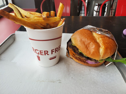 Nice, local alternative to a fresh burgers type joint. Burgers are good, the fries are more thin and crispy than those at Five Guys. Service has been good and the burgers are made quickly.