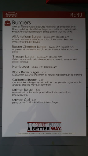 I love the burgers and like being able to choose from a really broad range of toppings and buns. Its not as fast as Mcburgers but faster than some sit down burger places (like 5guys) with much higher quality meat & a big range of healthy toppings!! I wouldve given Burger Fresh 5 stars but the dining room lacks ambiance. :-D
