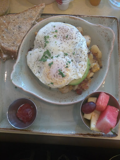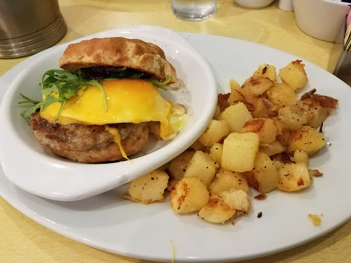 This is a nice and clean location. They usually bring a large jug of water so you can freely fill up yourself, as well as a huge Spout of fresh coffee to refill as needed. I usually go with the traditional breakfast. There are good looking dishes and salads, but I think you need to order the right thing for a good pick outside of standard breakfast fare. There are fresh juice drinks which are pretty good, but Ive only tried maybe one of them..sometimes the servers and hosts seem a little disjointed. Its difficult to grade breakfast spots that ARENT greasy spoons or diners in my opinion. Nevertheless, it is a "healthier" breakfast spot in comparison to a greasy spoon. When I have time to lounge a bit and enjoy a drawn out breakfast or brunch, its a good option. Higher prices than a greasy spoon as well.